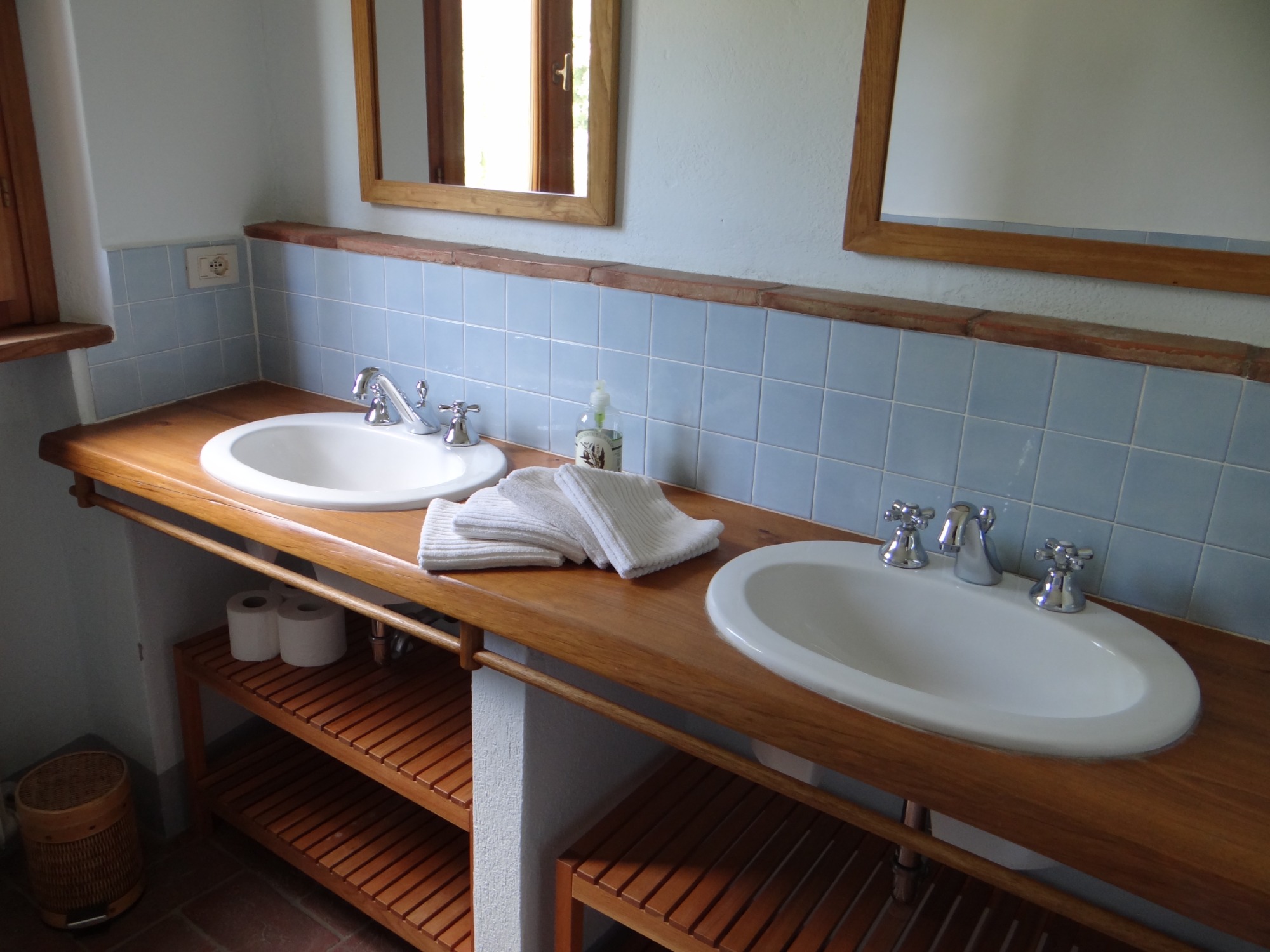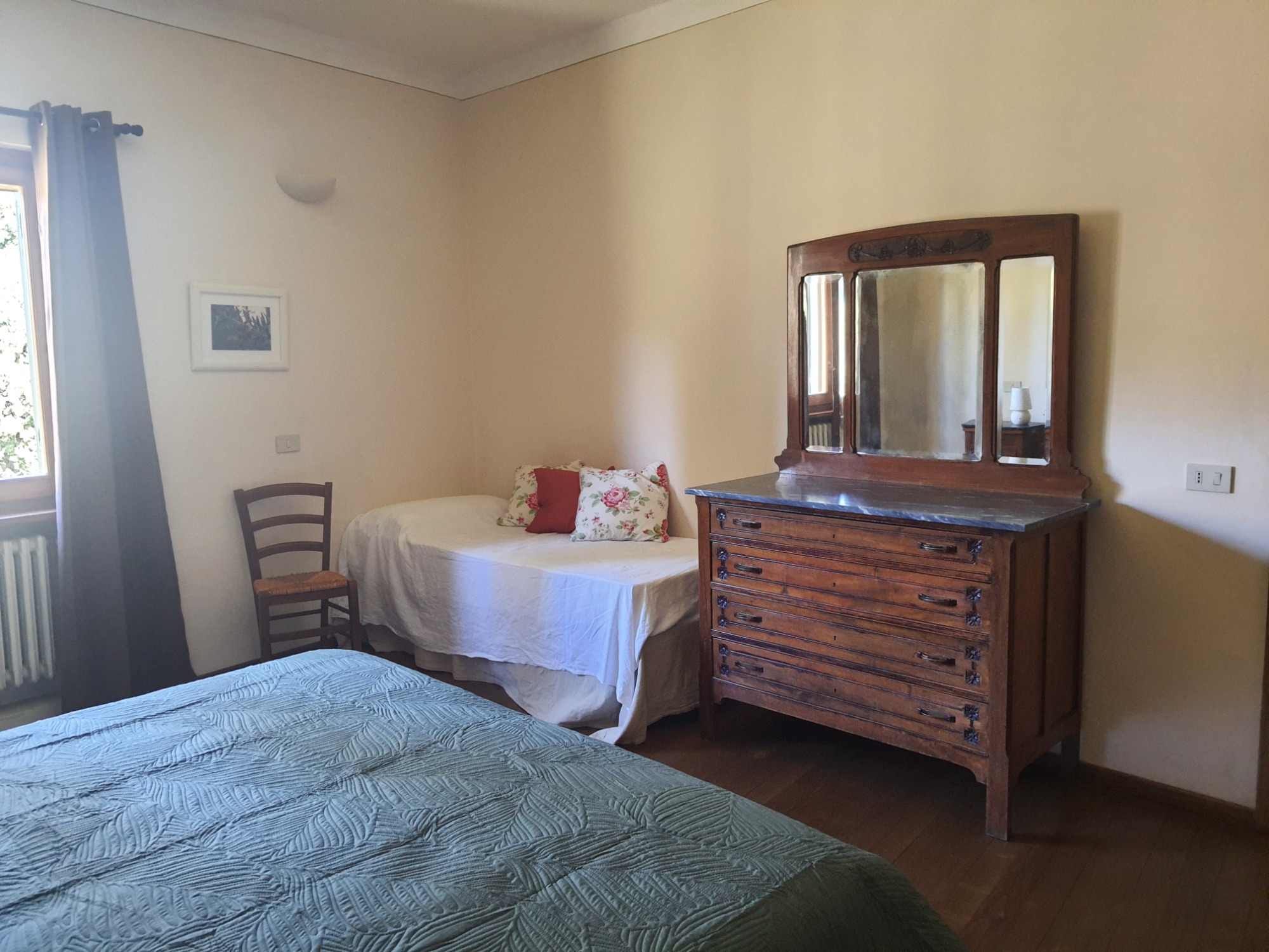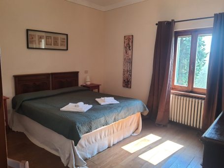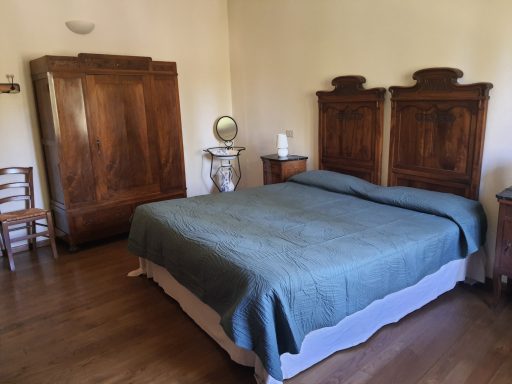 Zwei Schlafzimmer, beide toskanisch möbliert und mit Parkettboden ausgestattet: ein Doppelzimmer und ein Dreibettzimmer, ideal für Familien oder Freunde.