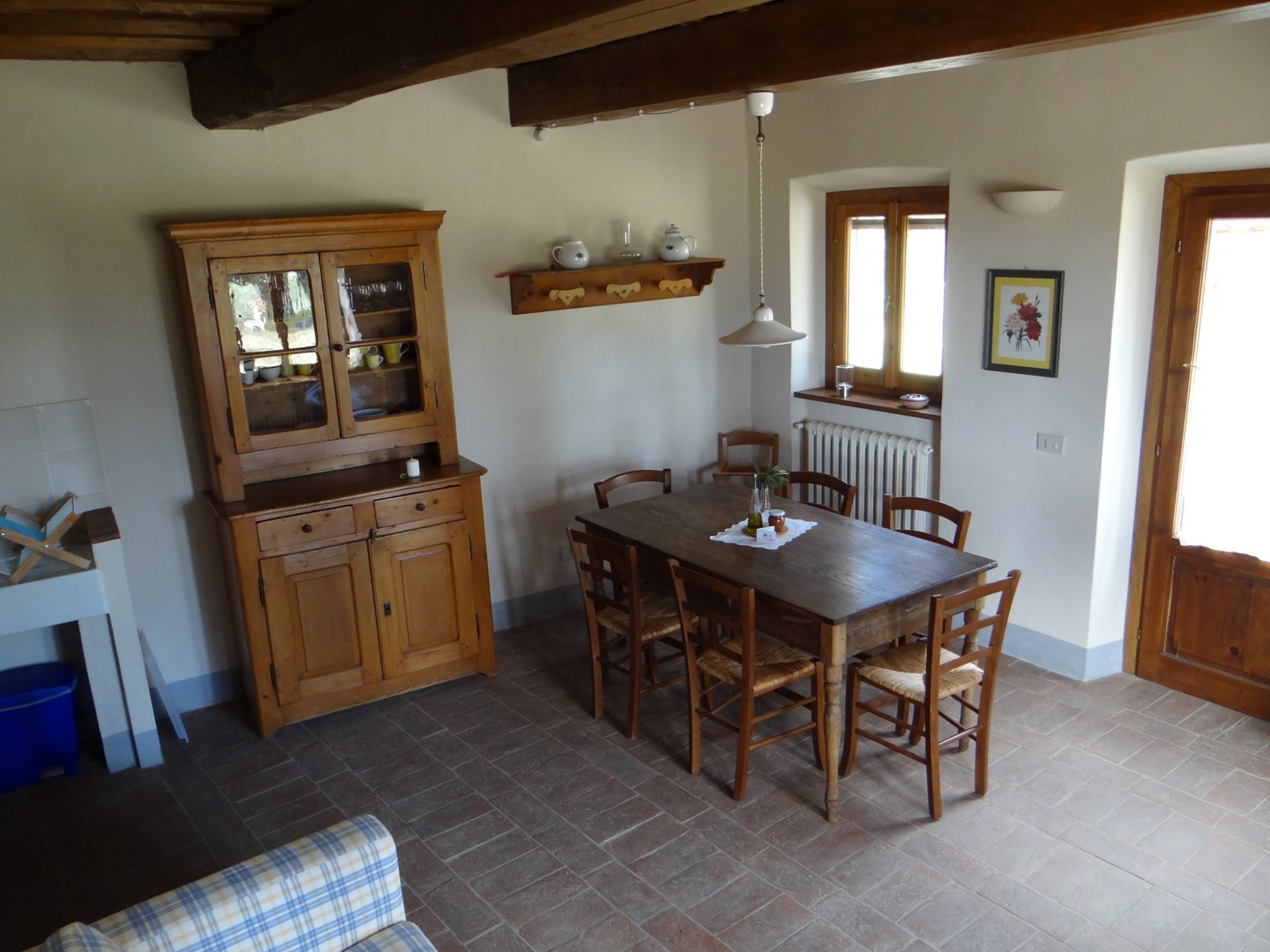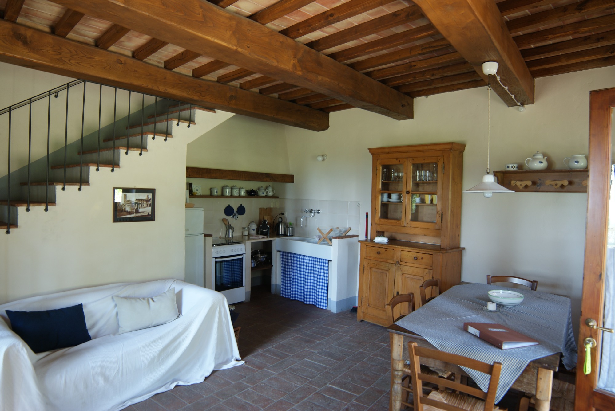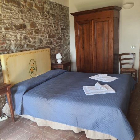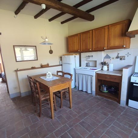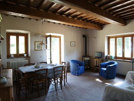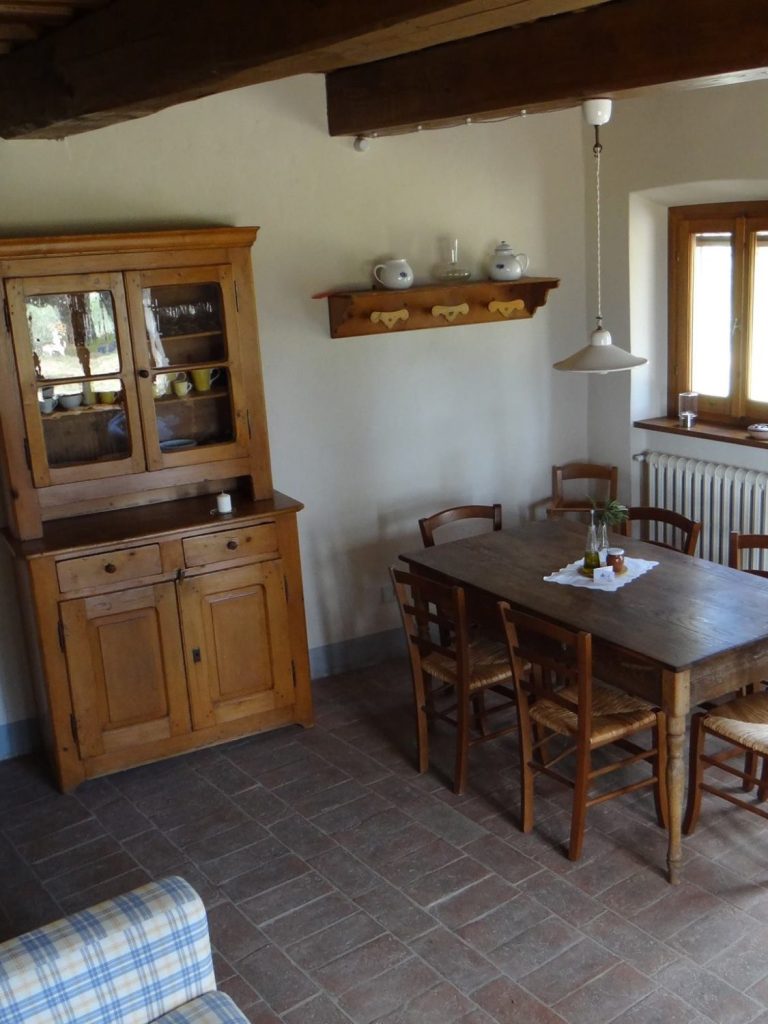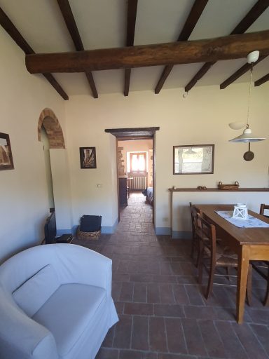 Die Wohnung „Olivo“ erstreckt sich über zwei Etagen und ist im typischen toskanischen Stil eingerichtet – mit traditionellen Cotto-Böden, Holzbalkendecken und einer warmen, einladenden Atmosphäre. Sie bietet Platz für bis zu 5 Personen und hat 75 qm.